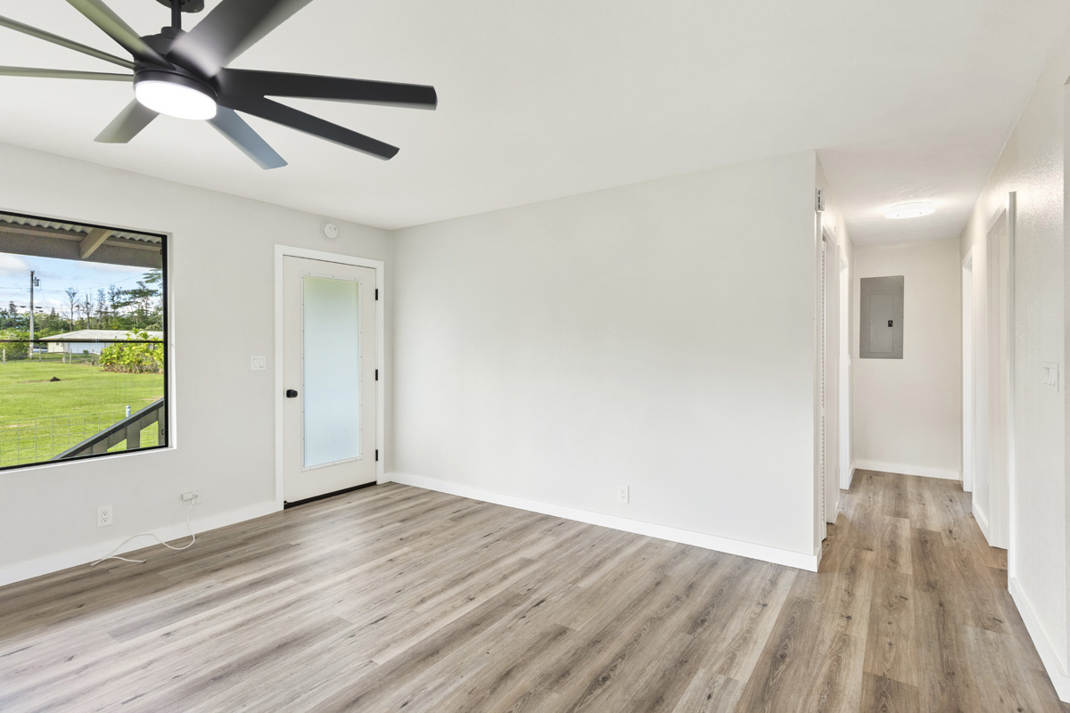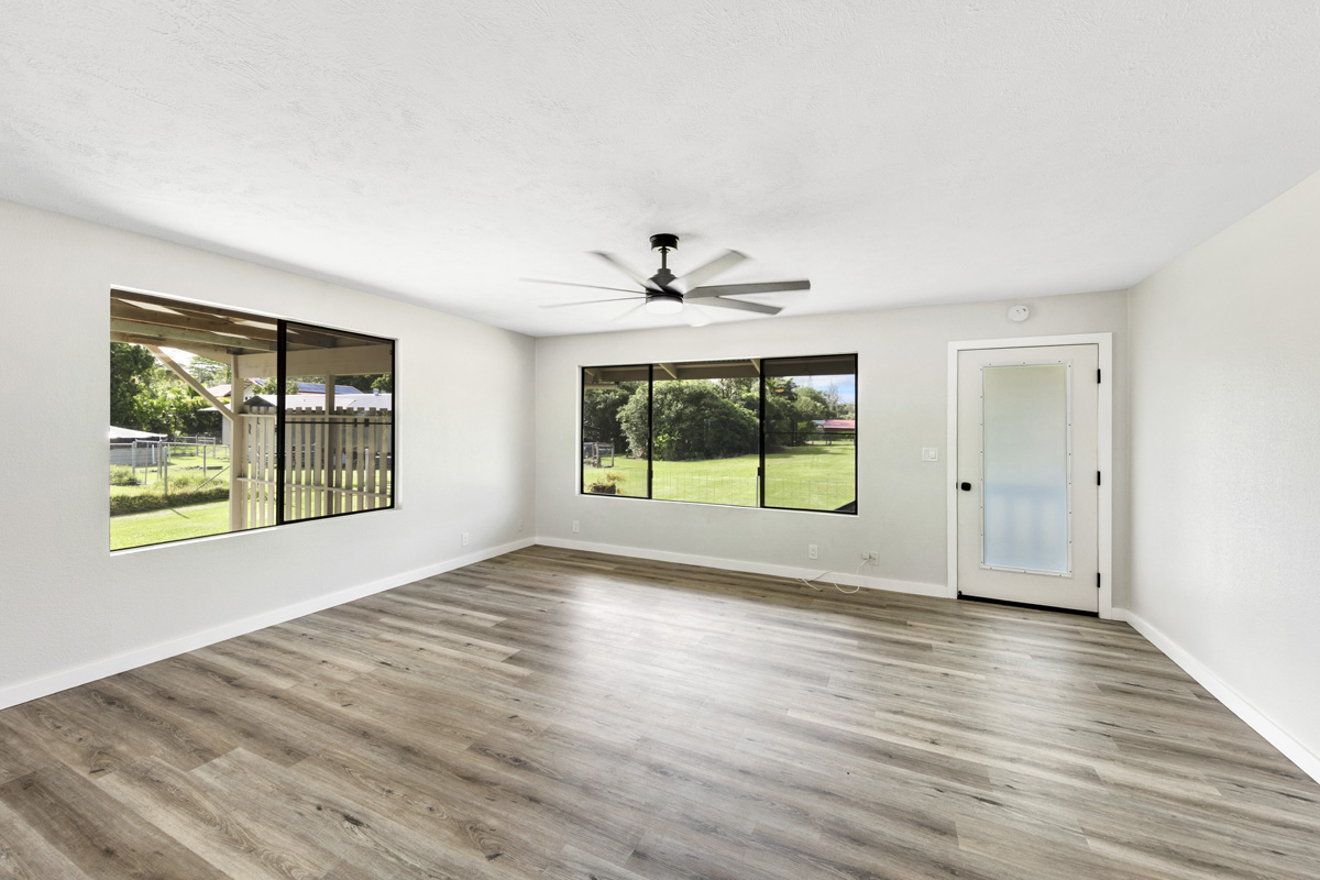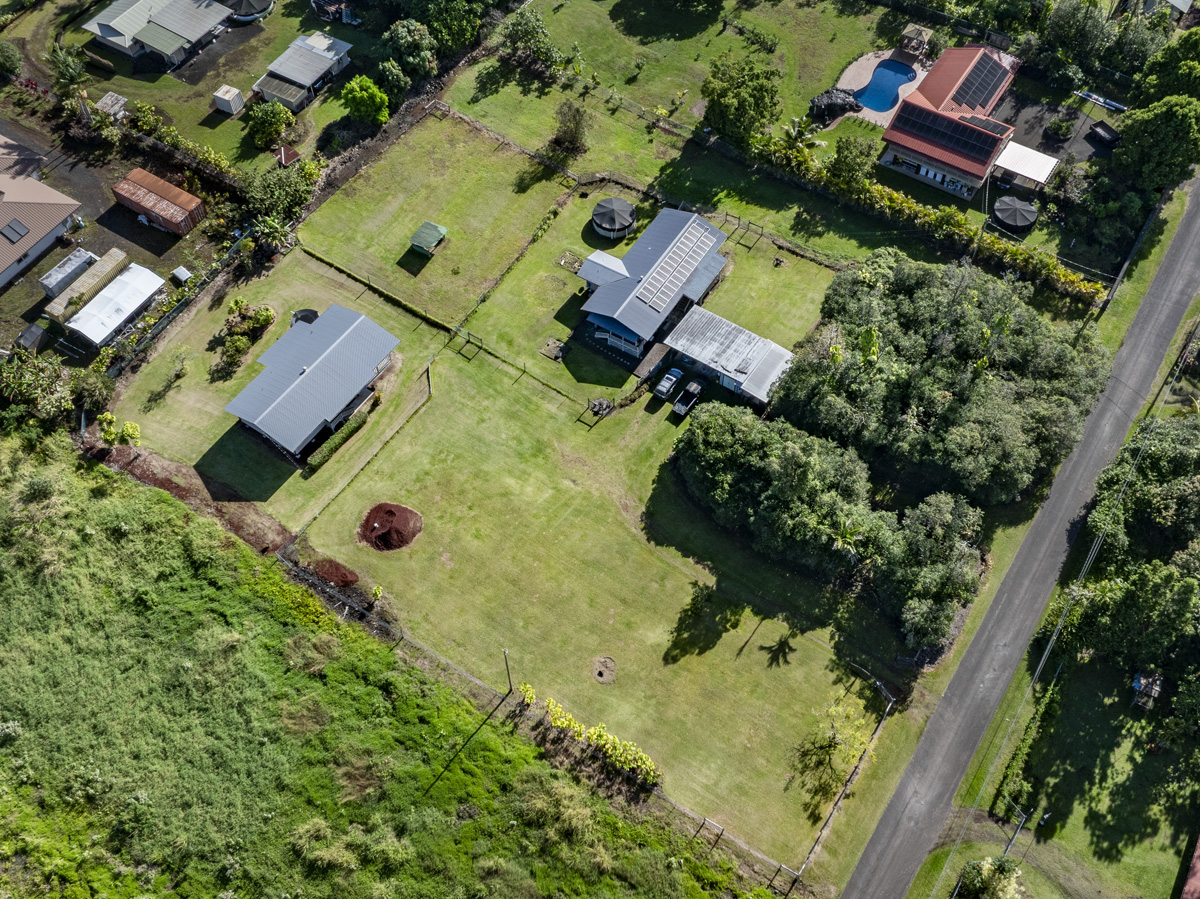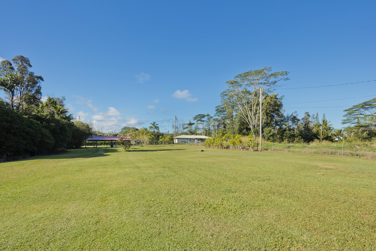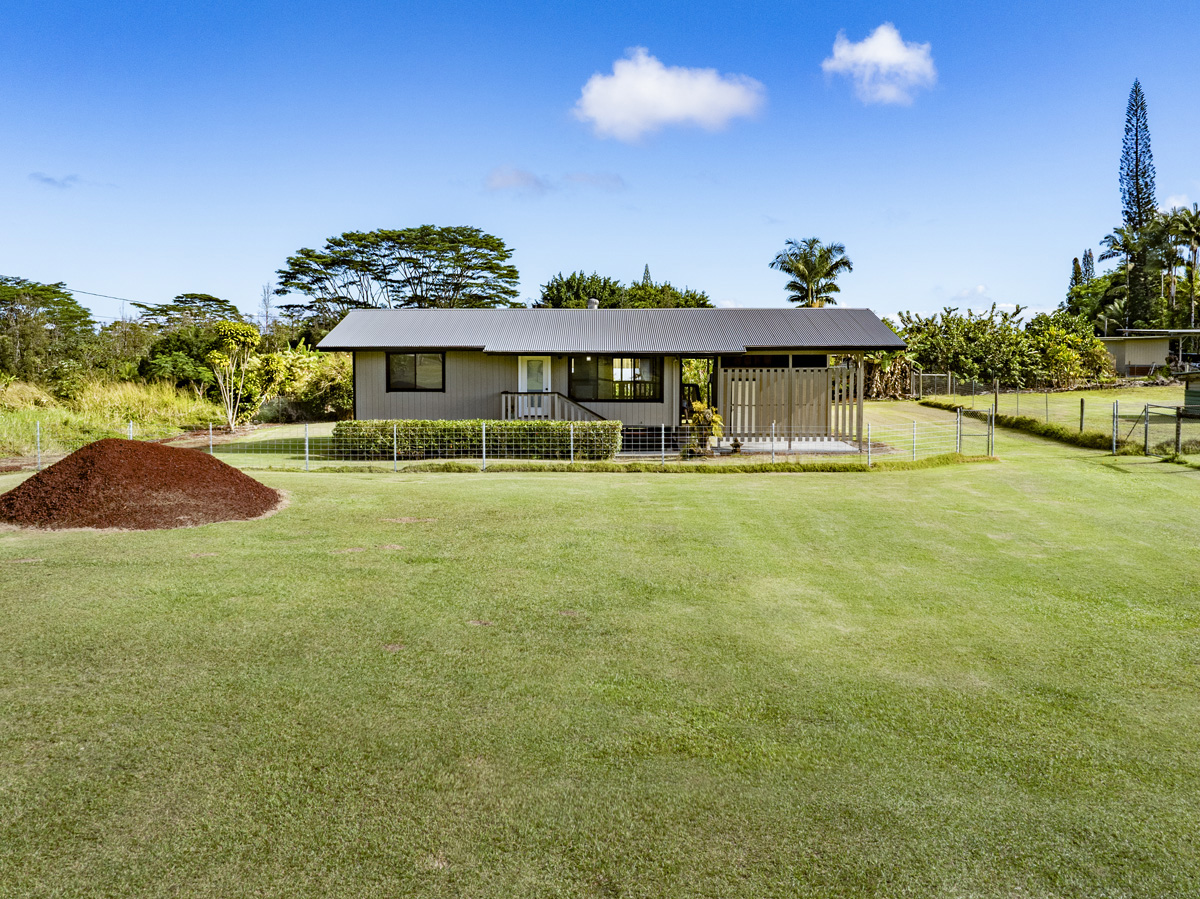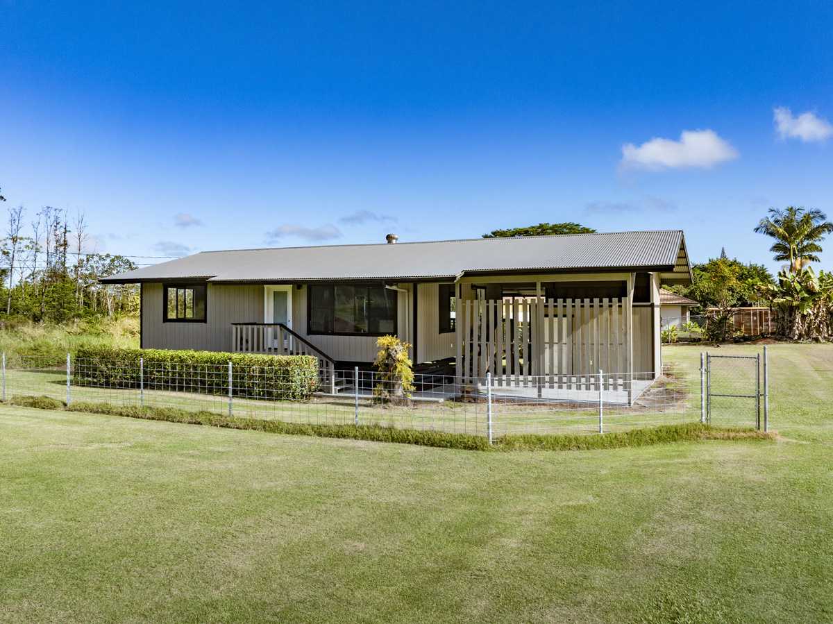 Discover the perfect blend of privacy and modern comfort on this beautifully improved one-acre property on paved 25th Ave near the top of Hawaiian Paradise Park. Situated away from the road at the back of a mostly fenced, grassy parcel, this freshly remodeled 2-bedroom, 1-bath post-and-pier home offers a peaceful, private setting with gated entry for added security and seclusion. With over 1,000 Sq. Ft. of living space, this well kept home provides a functional layout designed for everyday island living.