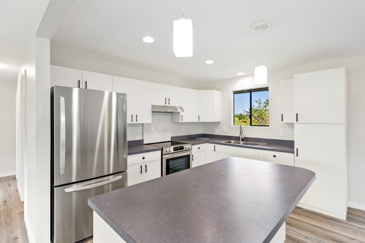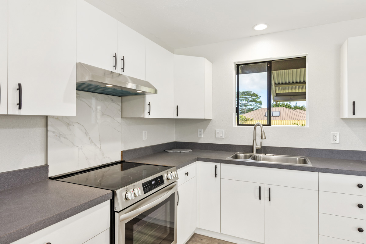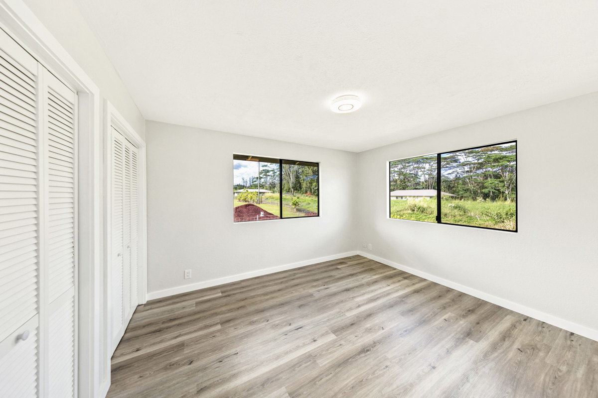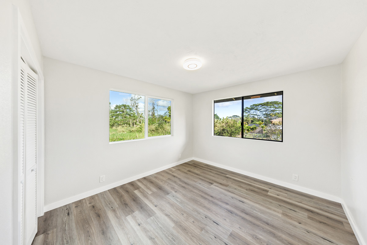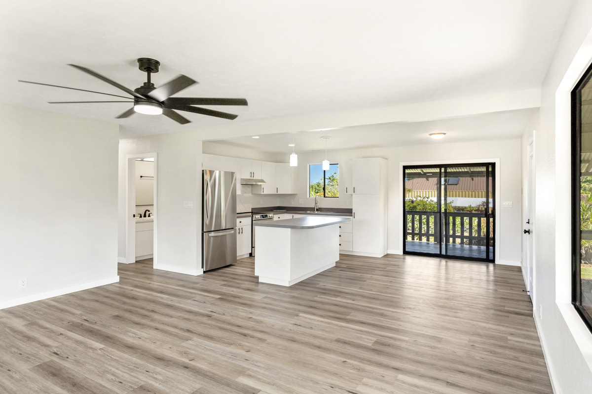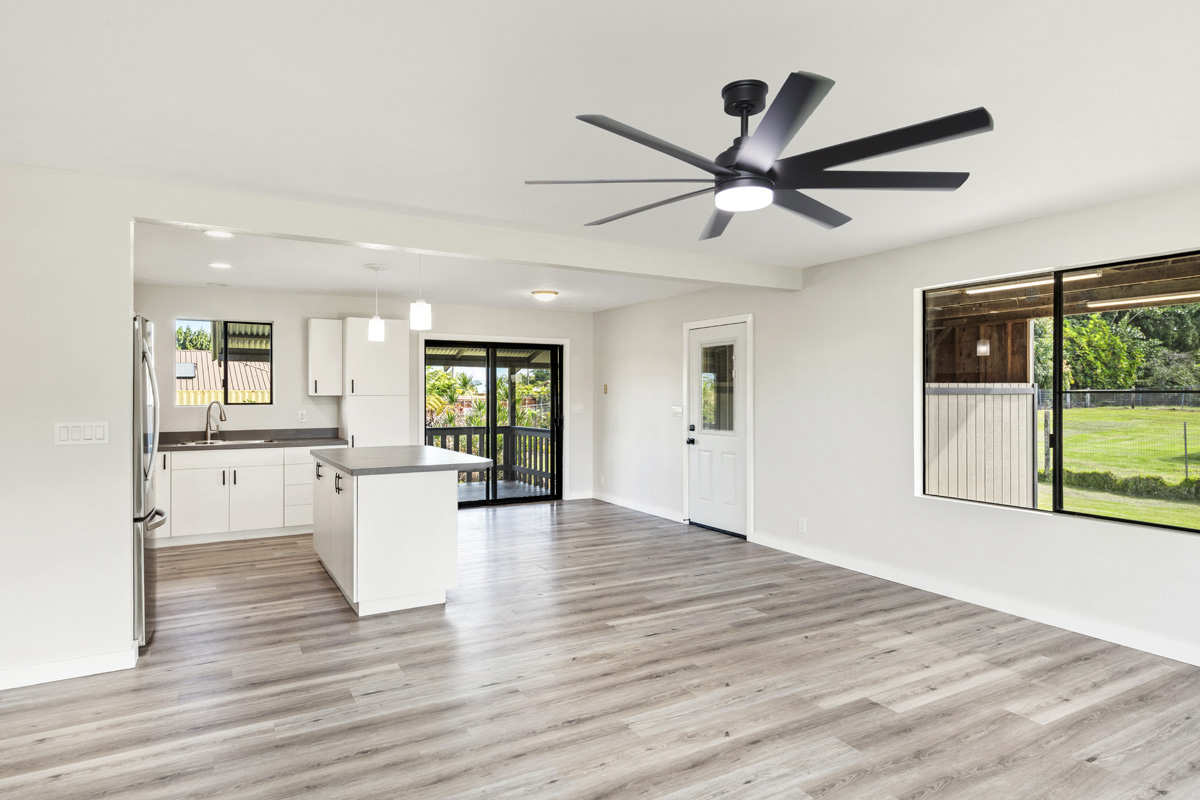 Discover the perfect blend of privacy and modern comfort on this beautifully improved one-acre property on paved 25th Ave near the top of Hawaiian Paradise Park. Situated away from the road at the back of a mostly fenced, grassy parcel, this freshly remodeled 2-bedroom, 1-bath post-and-pier home offers a peaceful, private setting with gated entry for added security and seclusion. With over 1,000 Sq. Ft. of living space, this well kept home provides a functional layout designed for everyday island living.