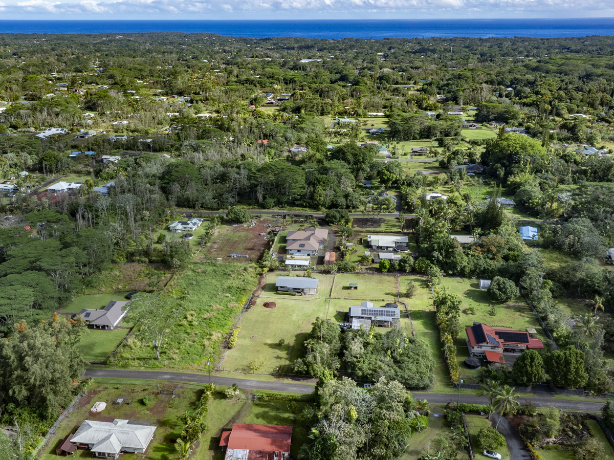 Conveniently located, a short drive brings you to nearby amenities including Orchidland General Store (approx. 2 miles), Puna Kai Shopping Center (5.3 miles), Keaau (7.2 miles), and Hilo (15 miles).