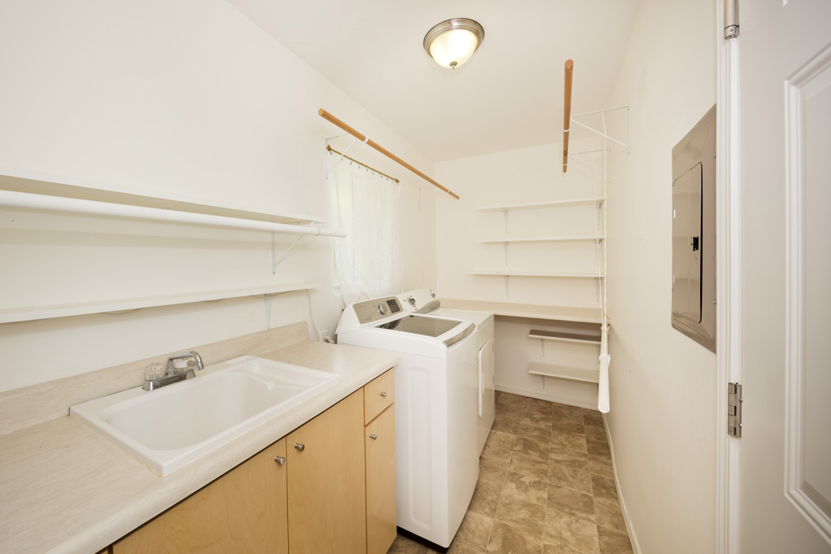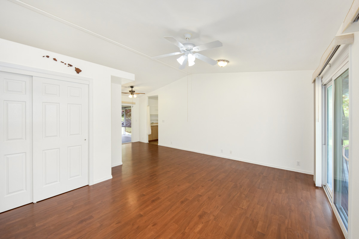 Inside, a vaulted ceiling elevates the freshly painted living room area, and multiple sliding glass doors fill the space with natural light creating an open, airy ambiance. The kitchen boasts a french door refrigerator, oven range, overhead microwave and ample cabinets including a pantry for storage. An indoor laundry room adds everyday convenience. The primary suite has a walk-in closet and an ensuite bath, featuring a deep soaking tub and separate shower. The floor plan offers both privacy and flexibility, with inviting outdoor spaces that seamlessly connect the indoor living areas with the lush landscaping. Enjoy the expansive rear lanai overlooking the yard -- perfect for outdoor dining or casual gatherings.